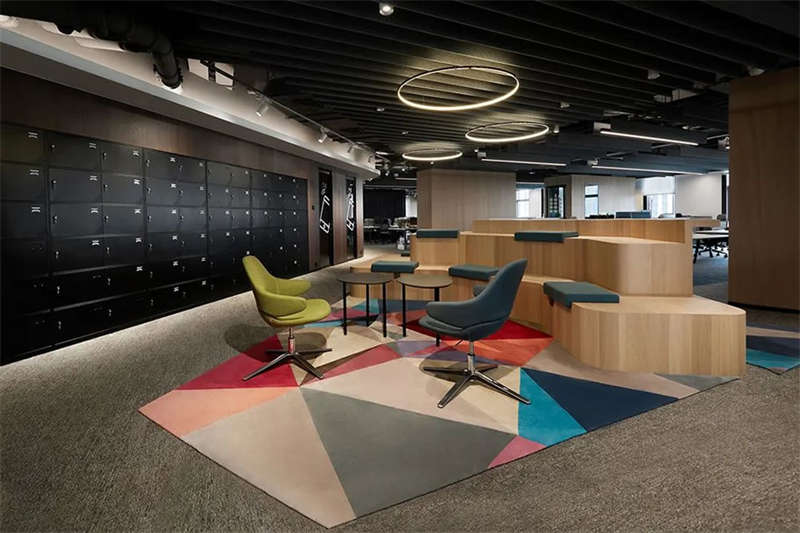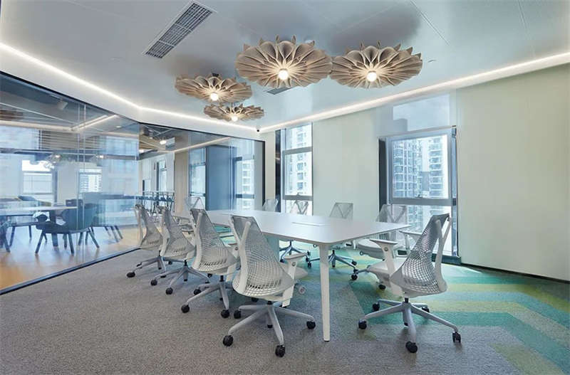 在空間規(guī)劃設(shè)計上,進(jìn)行了動靜分區(qū),并打破了原有的動線,路線上進(jìn)行了延伸、切角設(shè)計。在規(guī)劃各個功能空間中,充分考慮到建筑外光線與景觀的因素,將最好的光線位置留作員工咖啡交流及健身區(qū),將最好的視野區(qū)域作為總部接待大會議室。充分利用自然光,向員工傳遞正能量,其中亮點是每一個部門之間都設(shè)計了開放或半通透的多功能交流區(qū)域。讓員工參與互動活動、討論或組織公司活動,這種輔助辦公空間充足的情況下,有助于緩解員工工作中的所有壓力,幫助他們度過閑暇時光。