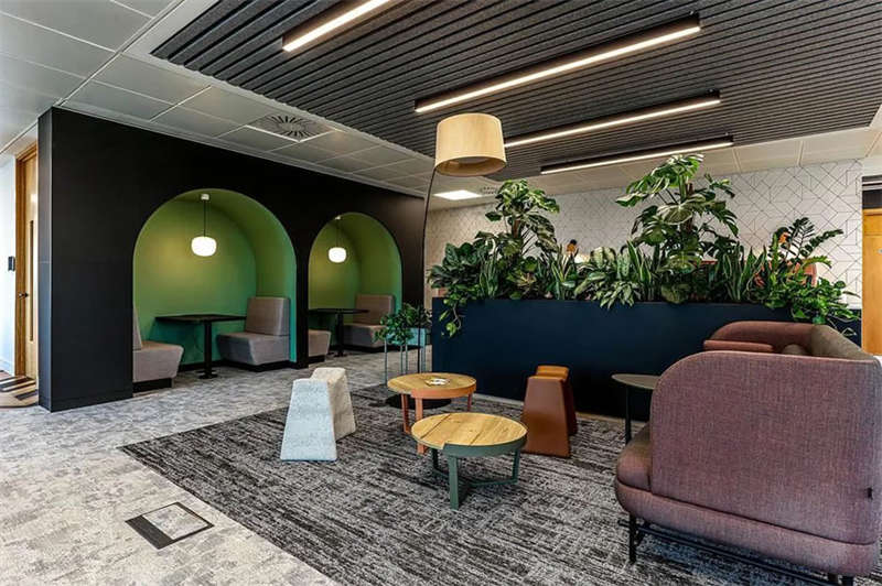 這個空間的風(fēng)格是對硅谷科技公司為團隊組織空間的方式的認(rèn)可。其外觀和感覺甚至植物景觀的設(shè)計也與其它樓層有細(xì)微的不同,但仍與整體配色方案相一致。生物景觀設(shè)計是本案的一個重要組成部分,這一區(qū)塊交由專業(yè)的團隊去做規(guī)劃,整個項目共整合了400多種不同的植物類型。