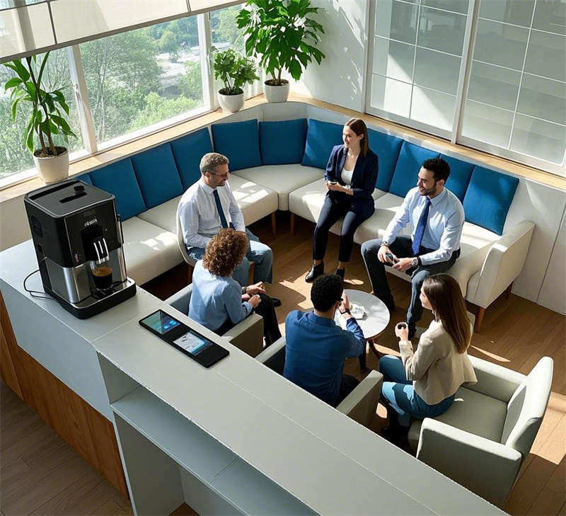 會(huì)議室配備全息投影和智能會(huì)議系統(tǒng),為高效會(huì)議和創(chuàng)意碰撞提供空間。茶水間以智能咖啡機(jī)和舒適座椅為主,結(jié)合綠植點(diǎn)綴,打造輕松社交的休閑區(qū)域。休息區(qū)融入虛擬現(xiàn)實(shí)設(shè)備,讓員工在沉浸式體驗(yàn)中放松身心。走廊通過燈光效果和藝術(shù)裝置,展現(xiàn)企業(yè)文化,實(shí)現(xiàn)空間過渡。