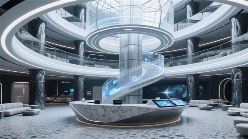 厘米級(jí)定位系統(tǒng)織就空間的數(shù)字神經(jīng)網(wǎng)絡(luò),實(shí)時(shí)感知行為軌跡的熱力圖譜。增強(qiáng)現(xiàn)實(shí)技術(shù)將虛擬協(xié)作層注入物理環(huán)境,會(huì)議紀(jì)要懸浮于白墻上空,項(xiàng)目進(jìn)度可視化流淌在地面光帶中。智能環(huán)境控制系統(tǒng)如同無(wú)形的指揮家,根據(jù)溝通場(chǎng)景自動(dòng)調(diào)節(jié)光域范圍與氣流速度,讓空間氛圍隨對(duì)話內(nèi)容自然脈動(dòng)。當(dāng)數(shù)字邏輯與建筑肌理深度融合,辦公室便升維為承載集體智慧的生命體。