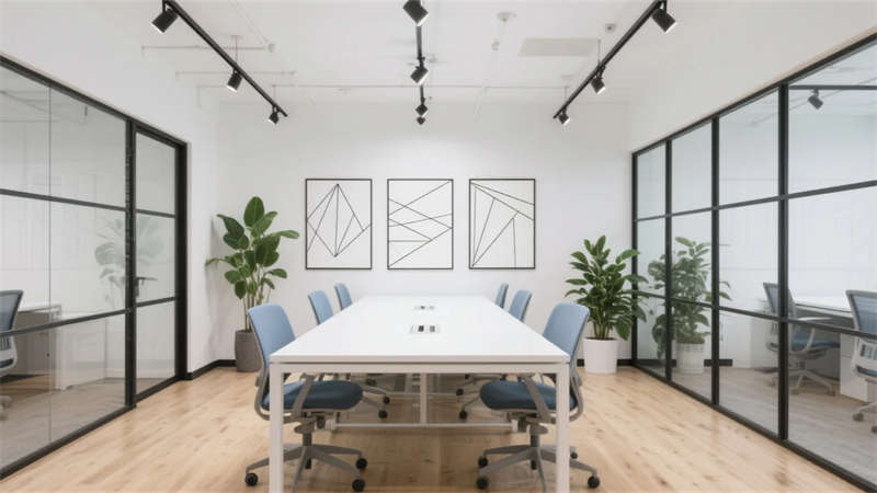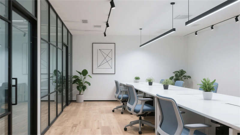 該辦公空間以現(xiàn)代簡(jiǎn)約主義為基調(diào),摒棄冗余裝飾,通過材質(zhì)本真與光影韻律構(gòu)建理性而溫潤(rùn)的場(chǎng)域。開放式布局打破傳統(tǒng)隔閡,淺木色地板與純白立面奠定寧?kù)o氛圍,黑色金屬框架勾勒結(jié)構(gòu)張力,形成流動(dòng)的視覺節(jié)奏。