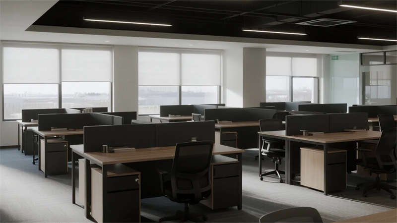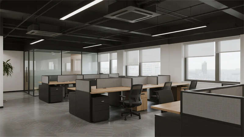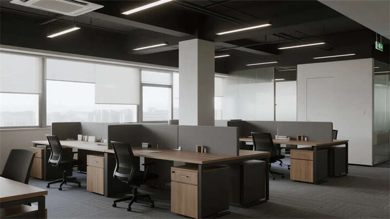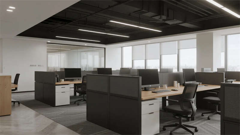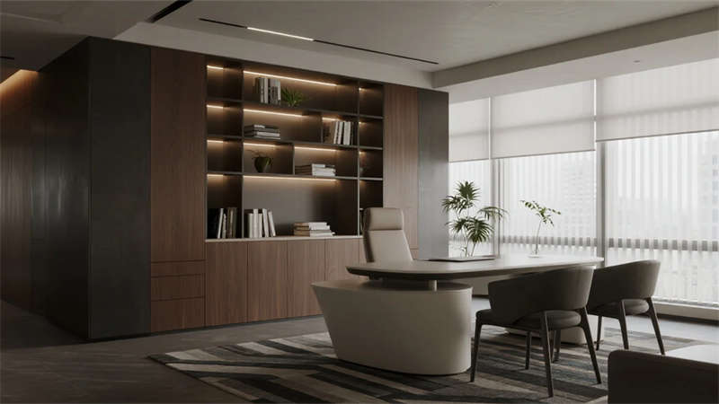 開放辦公區(qū)依托巨幅落地窗引入自然韻律,升降工位與模塊化家具賦予空間彈性;獨(dú)立辦公室通過垂直百葉調(diào)節(jié)光影私密性,暗藏式書柜燈光烘托沉穩(wěn)氣質(zhì)。核心協(xié)作區(qū)打破傳統(tǒng)封閉模式,弧形沙發(fā)與可書寫玻璃墻激發(fā)即興創(chuàng)意,而茶水間綠植墻與城市景觀吧臺(tái),則在高效節(jié)奏中注入呼吸感。