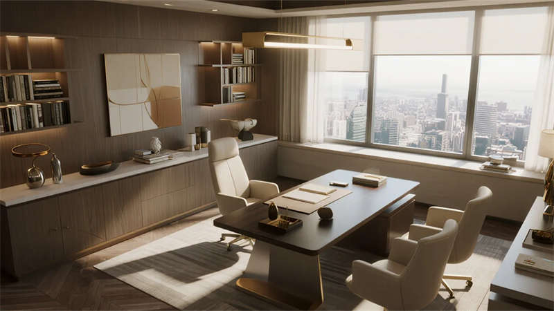 本設(shè)計以輕奢風格為核心,打造一個優(yōu)雅而舒適的辦公環(huán)境。外觀采用現(xiàn)代建筑語言,玻璃幕墻與金屬細節(jié)相結(jié)合,彰顯高端氣質(zhì)。內(nèi)部空間注重細節(jié)與品質(zhì),接待區(qū)以大理石前臺和金屬裝飾營造歡迎氛圍,開放式辦公區(qū)布局靈活,配備簡約家具和自然光元素,提升工作效率。會議室設(shè)計專業(yè)且智能,私人辦公室融合落地窗和 luxury 裝飾,提供靜謐工作空間。員工休息區(qū)與咖啡角注重舒適性,軟裝家具和溫馨 lighting 促進放松與交流。走廊區(qū)域通過藝術(shù)墻面和 lighting 效果增強空間感,整體設(shè)計融合材質(zhì)對比與柔和色調(diào),營造出精致而人性化的辦公體驗,強調(diào)美學與功能的平衡。
