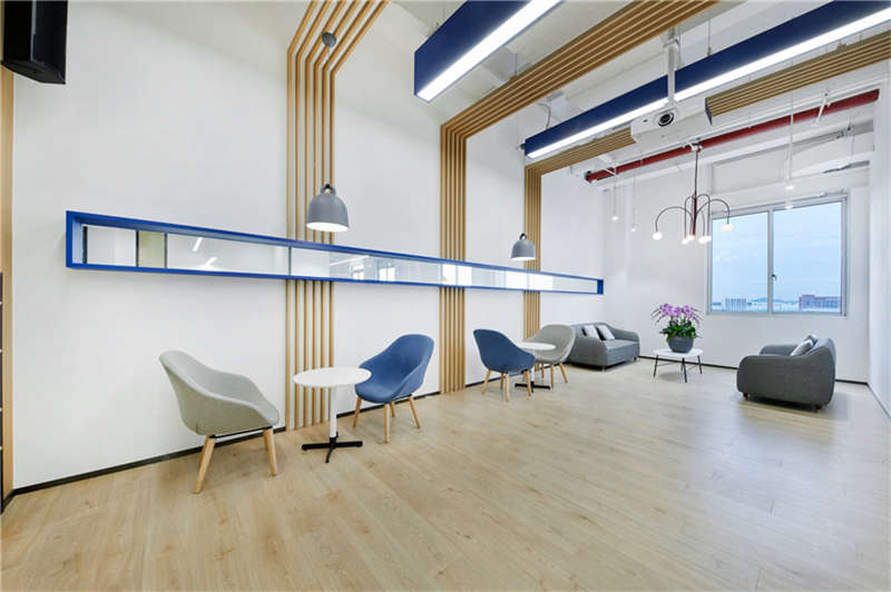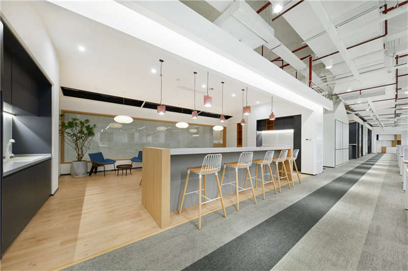 工位數(shù)量需求雖然龐大,但甲方對(duì)多元化的功能區(qū)的需求并未減少。于是我們將咖啡吧、茶水間、休閑區(qū)這幾個(gè)功能進(jìn)行融合,破除了空間的界定,將水吧區(qū)打造成一個(gè)開放性的多功能區(qū)域,賦予它全新定義,從而達(dá)到滿足員工的一系列休閑目的。