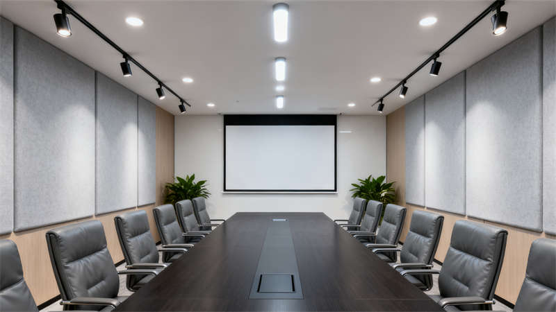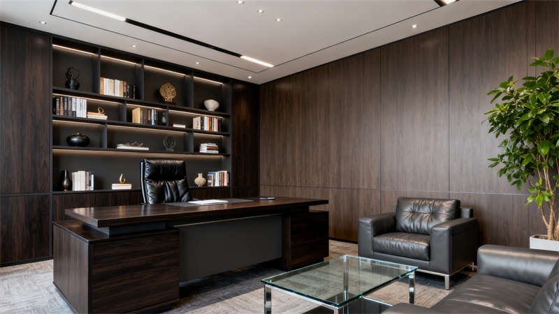 總經(jīng)理辦公室打造獨立私密的辦公環(huán)境,實木家具傳遞沉穩(wěn)質(zhì)感,真皮沙發(fā)與茶幾構建舒適的接待空間,書架的設置既實用又增添文化氛圍。會議室圍繞高效溝通需求設計,合理的座椅布局與投影設備搭配,墻面吸音板的運用保障音質(zhì)清晰。?