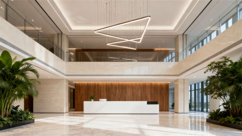 室內(nèi)空間設計從功能需求出發(fā),大堂采用挑高布局增強開闊感,大理石材質(zhì)的運用提升空間格調(diào),藝術吊燈與綠植的搭配增添靈動氣息,營造出大氣且溫馨的入口氛圍。標準辦公區(qū)以開放式布局為主,合理的工位隔斷兼顧協(xié)作與隱私,柔和的條形燈帶提供舒適照明,助力高效辦公。?