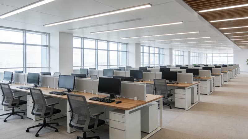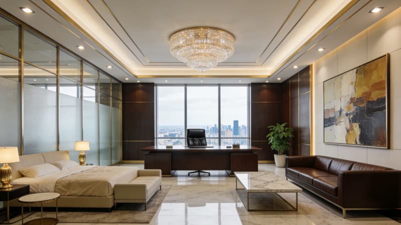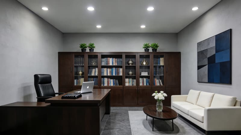 本案為蚌埠本土企業(yè)量身打造3000㎡全景式辦公室,以“地域文脈+現(xiàn)代辦公”為核心,將蚌埠淮河文化的溫婉底蘊(yùn)與當(dāng)代極簡美學(xué)相融。大樓外觀采用玻璃幕墻搭配淺灰金屬線條,簡約大氣中透著企業(yè)實(shí)力;前臺以溫潤石材與局部蚌殼紋理裝飾,暗藏地域符號。開放式辦公區(qū)規(guī)劃3個(gè)功能分區(qū),兼顧協(xié)作與私密,通透采光搭配靈活工位,適配多元辦公需求。經(jīng)理辦公室以沉穩(wěn)色系為主,嵌入定制收納系統(tǒng),平衡高效辦公與舒適體驗(yàn);總裁辦公室則融入輕奢元素,獨(dú)立茶歇區(qū)與全景落地窗結(jié)合,彰顯格局。會議室配備智能會議系統(tǒng),靈活切換研討、匯報(bào)等模式。整體設(shè)計(jì)既滿足3000㎡空間的功能分區(qū)合理性,又以細(xì)節(jié)傳遞蚌埠地域特質(zhì),為企業(yè)打造兼具實(shí)用性與品牌調(diào)性的辦公主場。