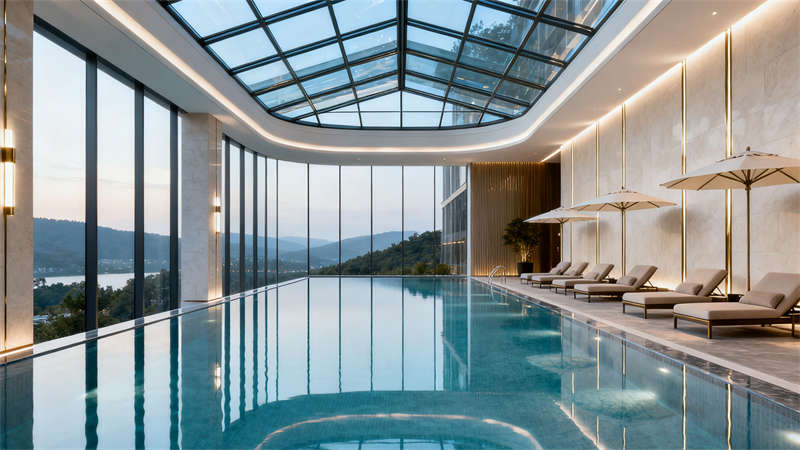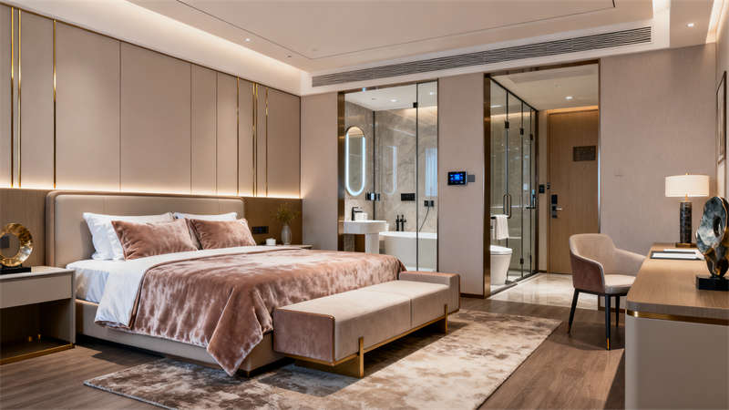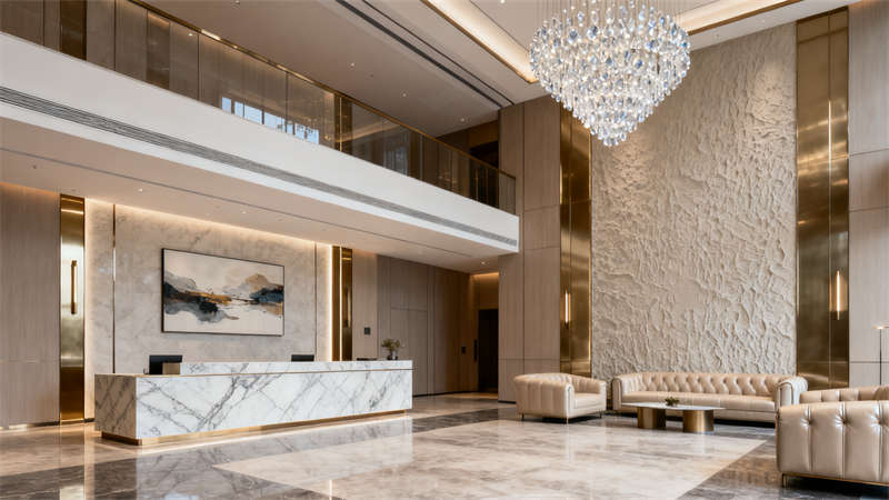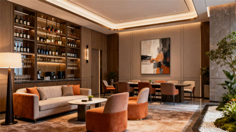 室內(nèi)空間裝修圍繞不同功能場(chǎng)景精準(zhǔn)發(fā)力。大堂以開闊通透為基調(diào),地面選用質(zhì)感石材鋪設(shè),墻面搭配柔和的肌理材質(zhì)與藝術(shù)裝飾,接待區(qū)設(shè)計(jì)簡約大氣,搭配舒適的休憩座椅,營造出溫馨且有格調(diào)的迎賓空間;行政套房注重私密性與舒適度,裝修上采用柔和的色彩搭配,床頭背景墻融入精致紋樣,家具選用簡約實(shí)用款式,衛(wèi)生間做干濕分離設(shè)計(jì),搭配品質(zhì)衛(wèi)浴設(shè)施,讓入住體驗(yàn)更顯愜意;全日制餐廳裝修兼顧實(shí)用性與氛圍營造,開放式布局搭配半私密卡座,餐桌椅選用耐用且美觀的款式,墻面點(diǎn)綴綠植與藝術(shù)掛畫,燈光采用暖色調(diào),打造出適合用餐的輕松環(huán)境;多功能宴會(huì)廳以靈活實(shí)用為核心,裝修上采用簡潔的吊頂設(shè)計(jì)與可調(diào)節(jié)燈光系統(tǒng),墻面選用大氣的裝飾材質(zhì),地面鋪設(shè)耐磨易清潔的材料,滿足不同活動(dòng)需求;行政酒廊裝修凸顯雅致感,柔和的燈光、舒適的沙發(fā)搭配質(zhì)感裝飾,為賓客提供放松交流的空間;健身中心裝修注重功能性,通透的玻璃隔斷、專業(yè)的運(yùn)動(dòng)地板搭配齊全的健身設(shè)備,營造活力氛圍;室內(nèi)泳池裝修以靜謐舒適為主,無邊際設(shè)計(jì)搭配自然光線引入,池邊布置休閑躺椅,讓賓客盡享放松時(shí)刻。