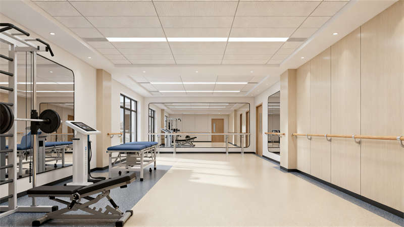 室內(nèi)空間延續(xù)外觀的簡約基調(diào),在材質(zhì)與色彩選擇上保持一致性。大廳以淺米色墻面搭配淺灰色地面,搭配暖白色燈光,營造出溫馨舒適的氛圍,緩解患者就醫(yī)時的緊張情緒;診室設(shè)計注重實用性與私密性,合理劃分診療區(qū)域與候診區(qū)域,墻面采用易清潔的環(huán)保材質(zhì),確保醫(yī)療環(huán)境的衛(wèi)生安全;病房以淺色系為主,搭配柔和的窗簾與溫馨的裝飾,為患者提供安靜舒適的康復(fù)環(huán)境,同時考慮到醫(yī)療需求,合理布置醫(yī)療設(shè)備擺放空間,兼顧舒適性與功能性;手術(shù)室采用潔凈度高的專業(yè)裝修材質(zhì),色調(diào)以純凈的白色為主,搭配藍(lán)色輔助色,營造出嚴(yán)謹(jǐn)專業(yè)的手術(shù)環(huán)境,確保手術(shù)過程的安全無菌;藥房設(shè)計注重藥品存儲的規(guī)范性與取藥流程的便捷性,合理劃分藥品分類區(qū)域,采用透明玻璃隔斷,提升取藥過程的透明度;護(hù)士站設(shè)計為開放式與半封閉式結(jié)合,方便護(hù)士與患者溝通,同時保證護(hù)士工作區(qū)域的有序性;康復(fù)訓(xùn)練室則根據(jù)康復(fù)需求,合理規(guī)劃訓(xùn)練區(qū)域,搭配適合康復(fù)訓(xùn)練的器械與柔和的空間色調(diào),為患者提供舒適的康復(fù)訓(xùn)練環(huán)境。整體裝修設(shè)計從患者需求與醫(yī)療功能出發(fā),在風(fēng)格統(tǒng)一的基礎(chǔ)上,實現(xiàn)了不同空間的功能適配,打造出兼具溫馨感與專業(yè)性的現(xiàn)代化醫(yī)院空間