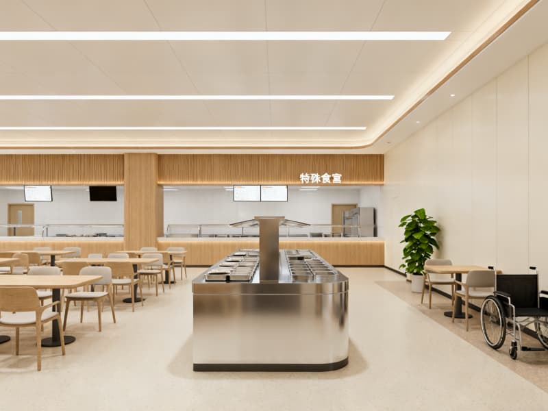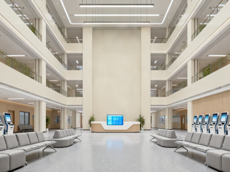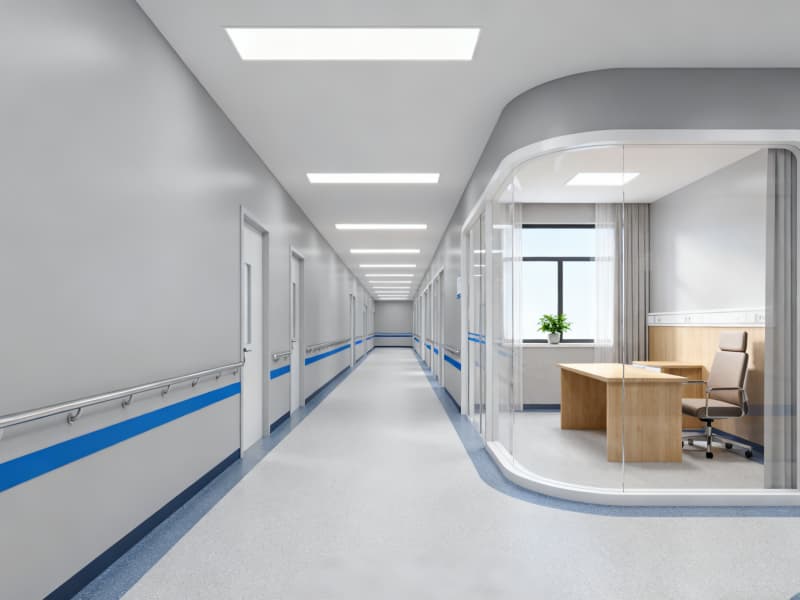 同時(shí),通過(guò)三大核心設(shè)計(jì)傳遞療愈感:①色調(diào)上以米白、淺灰、原木色為主,搭配藍(lán)色點(diǎn)綴,避免冰冷刺激;②材質(zhì)上選用醫(yī)用級(jí)環(huán)保、防污、防滑材料,兼顧安全與舒適;③元素上融入自然綠植、柔和燈光、圓角設(shè)計(jì)等,緩解患者就醫(yī)焦慮。?