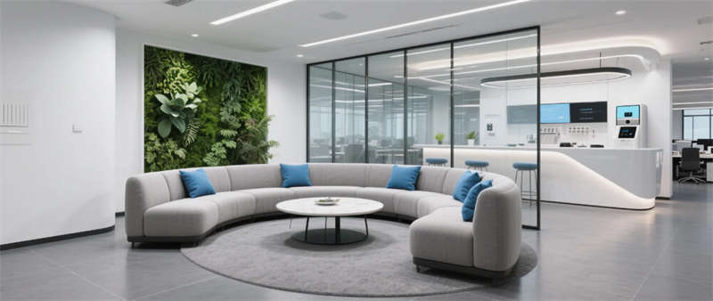 這座金融企業(yè)辦公樓的設(shè)計(jì)以智能科技融合為核心,巧妙結(jié)合現(xiàn)代簡(jiǎn)約美學(xué)與功能性,為日常辦公注入活力與效率。整體空間采用流暢的線條和中性色調(diào),通過(guò)玻璃隔斷和金屬細(xì)節(jié)營(yíng)造通透感,藍(lán)色元素作為視覺(jué)亮點(diǎn),象征創(chuàng)新與穩(wěn)定。大堂區(qū)以開(kāi)放式布局歡迎訪客,智能照明系統(tǒng)調(diào)節(jié)氛圍;開(kāi)放式辦公區(qū)強(qiáng)調(diào)協(xié)作,可調(diào)節(jié)家具提升舒適度;高管辦公室則注重私密與高效,落地窗引入自然光。會(huì)議室配備先進(jìn)投影技術(shù),確保討論精準(zhǔn);休息區(qū)和食堂區(qū)融入綠植與社交元素,促進(jìn)員工放松;多功能廳支持靈活轉(zhuǎn)型,滿(mǎn)足多樣活動(dòng);休閑區(qū)融合健身與閱讀,體現(xiàn)人文關(guān)懷。設(shè)計(jì)不僅優(yōu)化工作流線,還強(qiáng)化了企業(yè)形象,將科技感與舒適性無(wú)縫銜接,打造一個(gè)前瞻性的辦公環(huán)境。位于合肥的這座空間,以城市現(xiàn)代精神為靈感,成為金融行業(yè)的標(biāo)桿之作。