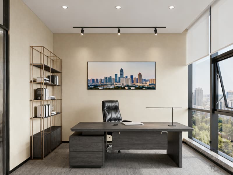 細(xì)節(jié)設(shè)計(jì)中,注重材質(zhì)的環(huán)保性與耐用性,選用低甲醛涂料、防滑耐磨地磚、靜音地毯等優(yōu)質(zhì)材料;融入智能系統(tǒng),如智能會(huì)議設(shè)備、無線充電模塊、智能照明等,提升辦公便捷度;通過落地玻璃窗、分散式照明等設(shè)計(jì)引入充足自然光線,減少空間壓抑感,同時(shí)搭配綠植裝飾,改善辦公環(huán)境。整體設(shè)計(jì)既滿足現(xiàn)代商務(wù)辦公的高效需求,又通過人性化細(xì)節(jié)與地域元素的融合,為企業(yè)打造兼具質(zhì)感與實(shí)用性的優(yōu)質(zhì)辦公載體。