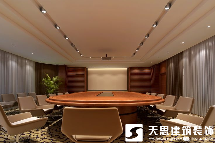 辦公室內(nèi)的會議室的座位安排,如何來安排會議的座位是會議室裝修設(shè)計中不可忽略的一個細節(jié)問題,會議室的座位安排原則:不僅要保證所有的參會人員能夠看到并能夠聽到發(fā)言人的發(fā)言,我們還要考慮到會議座位安排的商務禮儀。天思建筑裝飾設(shè)計根據(jù)多年辦公室裝修設(shè)計經(jīng)驗總結(jié)出會議室的布置的主要的五種方式:正式演講型、圓桌會議型、小組討論型、禮儀型、就餐座位安排。