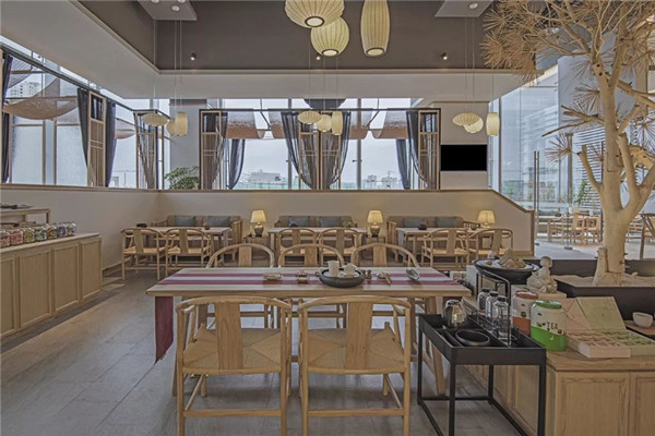 茶藝館的空間設計要與其總體設計風格相匹配。在空間布置上可通過虛的手法遮擋視線,似隔非隔,隔中有透,實中有虛。例如利用布慢、漏墻、珠簾、屏風、竹籬、木柵等緩沖通道與視線;又如,利用通道的回繞曲折相通,轉身回眸處別有一方天地。適當?shù)姆指暨€可滿足部分客人不想被打擾的心理,這就是所謂的"園必隔"。