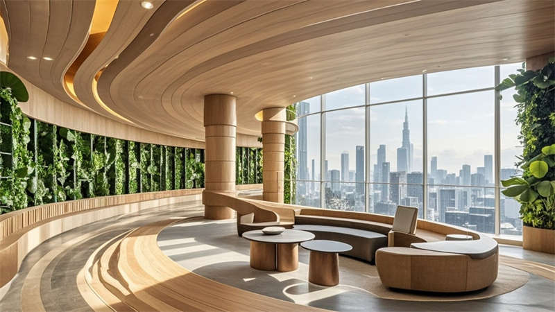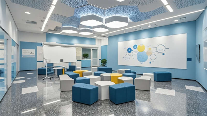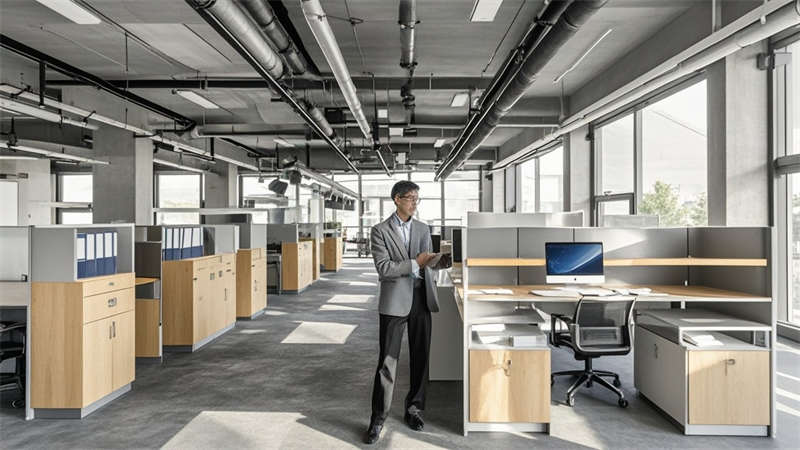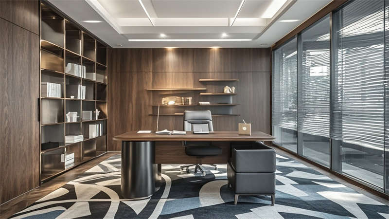 本1500㎡現(xiàn)代簡(jiǎn)約辦公室設(shè)計(jì)以'高效協(xié)作·人文關(guān)懷'為核心,采用模塊化空間布局提升使用彈性。主色調(diào)選用淺灰、白、木三色系,局部點(diǎn)綴企業(yè)深藍(lán)色強(qiáng)化品牌認(rèn)知。開放式辦公區(qū)采用1.2m×1.8m標(biāo)準(zhǔn)工位模塊,通過玻璃隔斷實(shí)現(xiàn)90%自然光滲透率。智能照明系統(tǒng)根據(jù)日照強(qiáng)度自動(dòng)調(diào)節(jié)色溫,全年節(jié)電率達(dá)35%。核心筒改造區(qū)運(yùn)用曲面木飾面弱化建筑結(jié)構(gòu),形成自然交流節(jié)點(diǎn)。聲學(xué)設(shè)計(jì)方面,蜂窩吸音板(NRC 0.85)與隔音艙(STC 52)組合控制噪音污染。茶水區(qū)采用磁吸軌道插座系統(tǒng),支持設(shè)備靈活接入。所有家具均符合WELL建筑標(biāo)準(zhǔn),辦公椅配備6向調(diào)節(jié)功能。通過BIM技術(shù)實(shí)現(xiàn)管線綜合,保留3.2米凈高營(yíng)造開闊感。