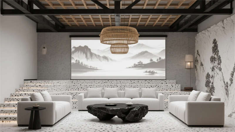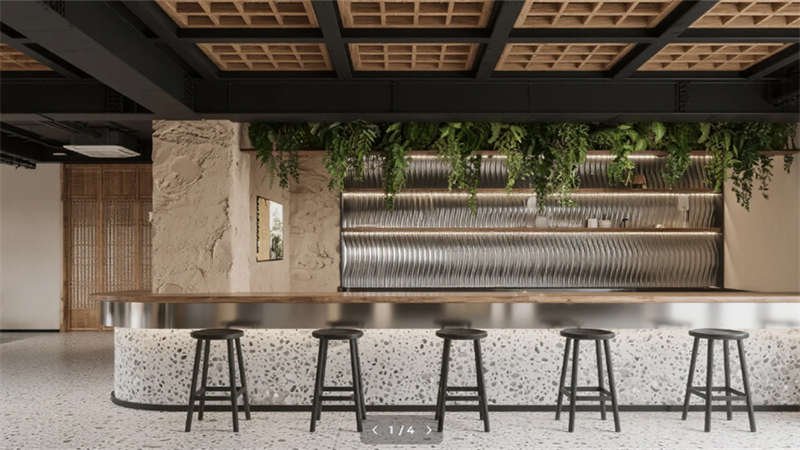 新中式工業(yè)風(fēng)骨架支撐起詩意場景,智能光療系統(tǒng)與磁吸供電科技隱于無形。云會(huì)議艙的煙雨江南數(shù)字畫卷,與夯土吧臺的粗糲質(zhì)感形成時(shí)空回響。這里不僅是效率容器,更是滋養(yǎng)人文精神的山川微縮劇場,在機(jī)械理性中重建天人合一的當(dāng)代范本。