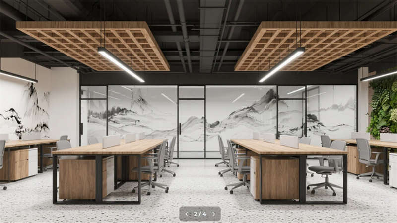 空間脈絡(luò)延續(xù)山水哲學(xué)——開放式辦公區(qū)的水墨玻璃隔斷營造朦朧畫境,創(chuàng)想實(shí)驗(yàn)室可書寫墻面激發(fā)思維奔流。協(xié)作沙龍區(qū)的階梯布局與動(dòng)態(tài)山水投影,催化靈感迸發(fā)的化學(xué)反應(yīng)。靜思艙藏身綠植墻中,為深度思考保留秘境。