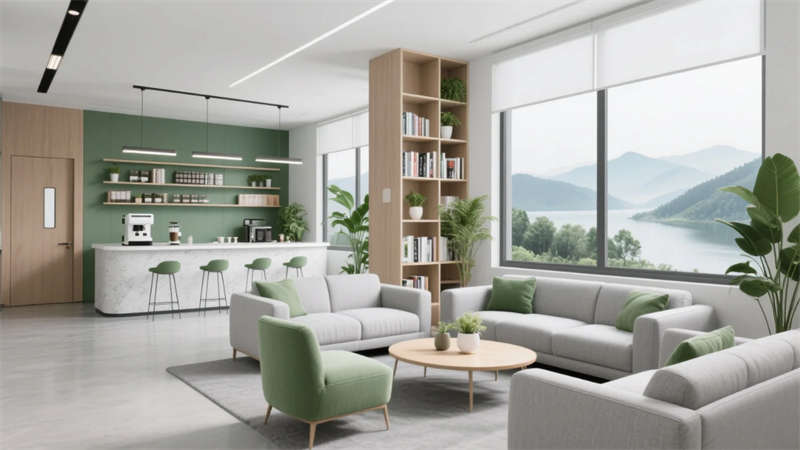 這座辦公室設(shè)計以滁州為靈感,融合自然與創(chuàng)新元素,打造出和諧高效的工作環(huán)境。整體采用現(xiàn)代簡約風(fēng)格,線條流暢而開放,中性色調(diào)搭配木質(zhì)細(xì)節(jié),營造出清爽視覺統(tǒng)一感。設(shè)計中強調(diào)生態(tài)連接:綠植貫穿各功能區(qū),如休息區(qū)的山水窗景和協(xié)作區(qū)的綠植墻,呼應(yīng)滁州的自然環(huán)境,提升員工舒適度與歸屬感。核心亮點在于靈活空間規(guī)劃——模塊化家具和可移動隔斷支持快速重組,適應(yīng)不同工作模式,從專注區(qū)到協(xié)作區(qū),無縫切換個人與團隊需求。茶水間和休息區(qū)融入社交元素,鼓勵非正式交流,而經(jīng)理辦公室的私密會談區(qū)則平衡了效率與人文關(guān)懷。照明設(shè)計巧妙利用自然光與LED結(jié)合,減少能耗,同時綠植點綴凈化空氣,體現(xiàn)可持續(xù)理念。最終,空間不僅提升生產(chǎn)力,更成為滁州城市活力的縮影,彰顯現(xiàn)代辦公的進(jìn)化方向。