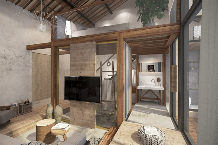 大廳是民宿中的多功能區(qū)域,具有吃飯、聊天、休閑等多種功能。合理的民宿裝修設(shè)計(jì),一般不把客房與大廳設(shè)計(jì)在同一層,不然客房中的人不能很好的休息。