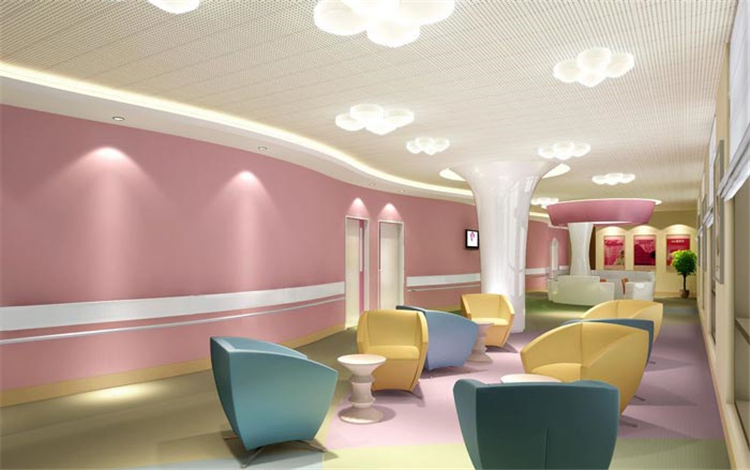 設(shè)計理念: 婦女兒童醫(yī)院裝修設(shè)計之初,設(shè)計師就不斷吸收建筑設(shè)計中“母親懷抱小孩”的理念。在經(jīng)過和業(yè)主之間的交流,深入了解醫(yī)院的院系文化、歷史背景、管理理念和價值觀取向,結(jié)合婦女兒童這兩種特定人群進(jìn)行設(shè)計思考。醫(yī)院以產(chǎn)科、婦科、兒科為主要服務(wù)對像,設(shè)有女性溫馨門診,婦科腔鏡中心、兒童“卡通”門診。病區(qū)設(shè)有中高檔床位90張,擁有VIP尊貴病房,設(shè)計師為了讓病房家庭化,對病房進(jìn)行了重點設(shè)計,定位于溫馨的病房。在病房區(qū)域的大廳,設(shè)計師引入了自然的光照、加入了休閑的風(fēng)格,定位于陽光休閑大廳。音樂候診咖啡吧,全方位滿足客患個性化需求,營造生態(tài)化、人文化就醫(yī)環(huán)境。