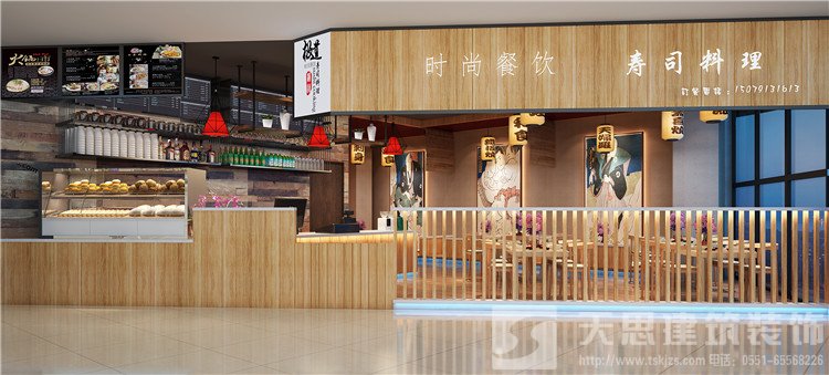 業(yè)主在裝修前跑了很多的裝飾公司,他想打造一個特色的壽司店,最終他和我們設(shè)計師達成一致觀點,通過努力,大家可以看到一個具有日韓式風(fēng)格特點的壽司店。壽司店屋頂采用燈籠式的吊燈,帶來傳統(tǒng)風(fēng)格的優(yōu)雅感。收銀臺與桌面那里擺放著艷麗的花兒點綴,顯得風(fēng)采艷麗。