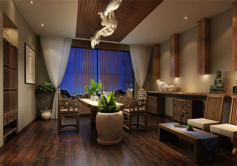 本案為一所茶坊,偏會所性質(zhì)。設計師根據(jù)客戶要求,對茶坊定位為新中式的設計風格。加入了一些古典的中式元素,使得空間顯得有質(zhì)感、有品位。對功能區(qū)域進行了明晰的分區(qū)設計,讓整個茶坊顯得有會所的層次感。