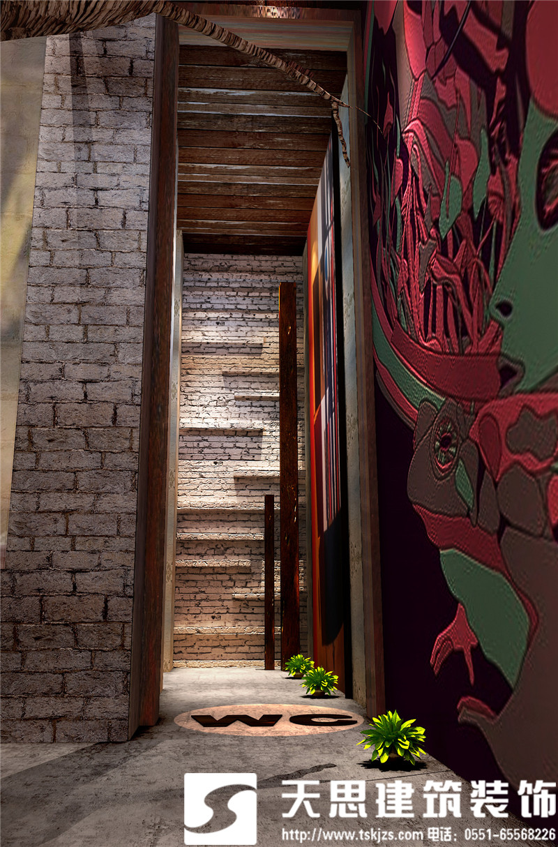 逆向思維的設(shè)計(jì)方式可見(jiàn)一斑,元素多為金屬鋼鐵、老榆木、清水混凝土等自然普通材質(zhì)。當(dāng)這些材質(zhì)與彩色燈帶彼此碰撞,律動(dòng)感瞬間迸發(fā)而出,同時(shí)他巧妙運(yùn)用反襯和撞色技巧塑造了空間,并未刻意用常規(guī)的大面積燈光來(lái)營(yíng)造絢麗空間,反而有意料之外的驚喜。鏤空隔斷打造開(kāi)放式格局,讓每一位顧客感受到流暢開(kāi)闊的空間構(gòu)造,敞開(kāi)心扉放肆的在I FINE酒咖尋找自我。