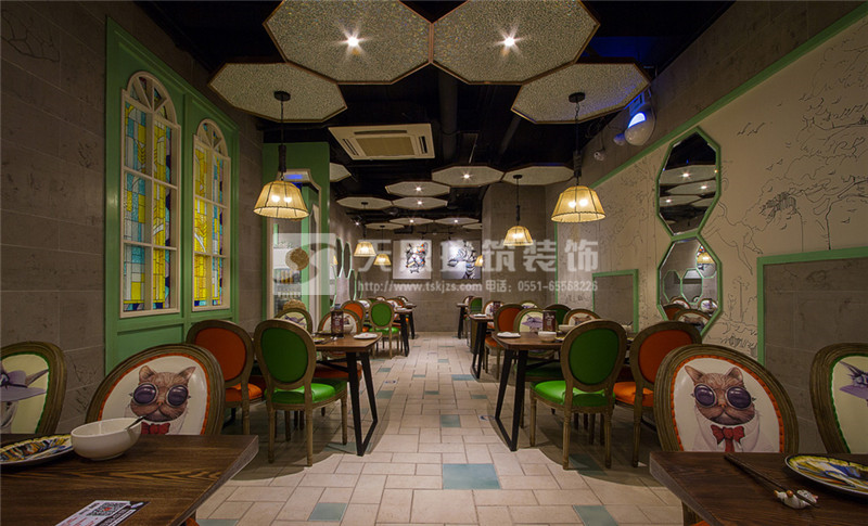 195㎡法式鐵板燒主題餐廳裝修設(shè)計(jì)效果