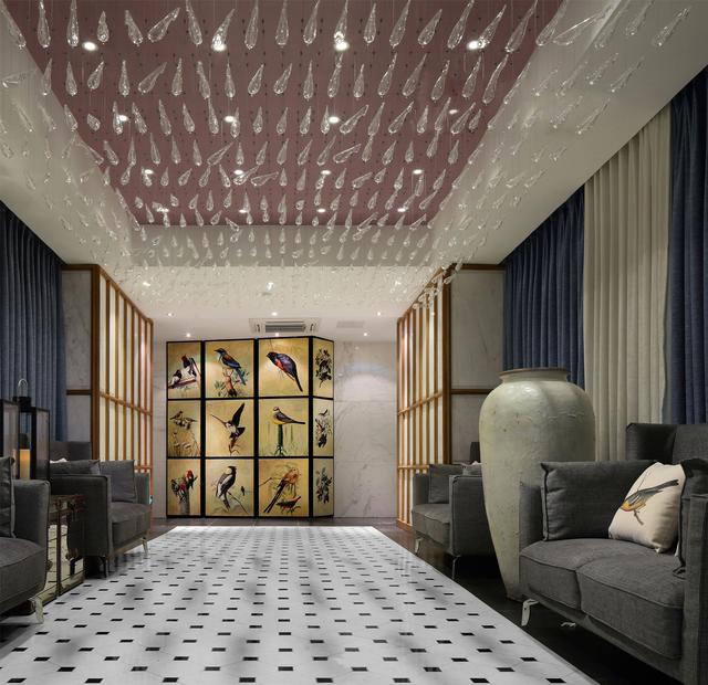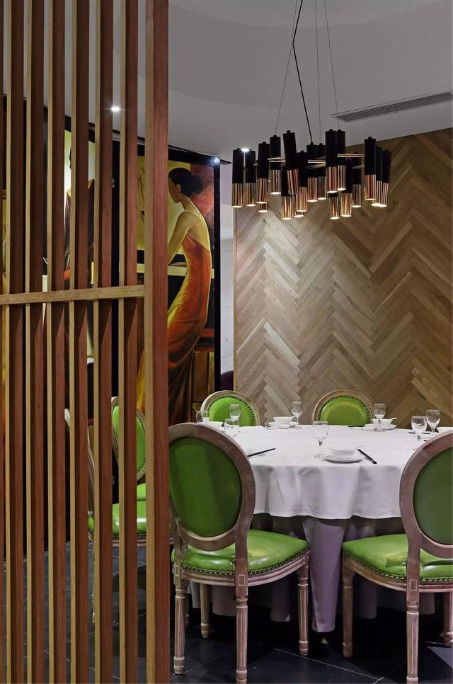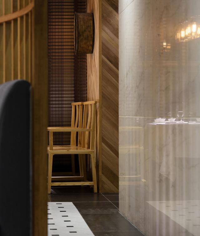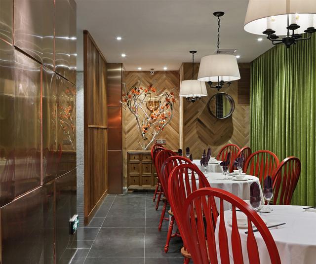 設(shè)計說明:餐廳主營淮揚菜系,針對這樣精致的菜肴,設(shè)計師認為餐廳的室內(nèi)空間也應(yīng)體現(xiàn)“雅”的內(nèi)涵,因此他以新中式混搭的手法,描摹了一幅幅“Mix and Match”的畫面,以現(xiàn)代人的審美需求來打造富有傳統(tǒng)韻味的空間。帶給人們獨具一格的就餐體驗。