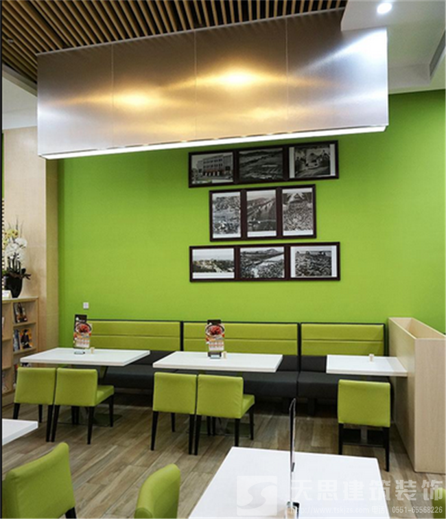 考慮到茶餐廳的飲食文化和特點,整個餐廳設(shè)計講究明亮通透、舒適清新,為保證有一個簡潔明亮的空間效果,又不會讓整個環(huán)境過于雜亂。