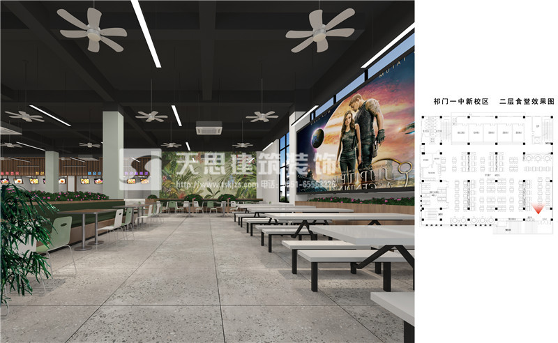 安徽天思專業(yè)專業(yè)提供餐廳設(shè)計(jì),食堂裝修施工服務(wù),質(zhì)量有保障。以下為祁門一中食堂設(shè)計(jì)效果圖,請(qǐng)您欣賞。如果您有相關(guān)需求請(qǐng)及時(shí)與我們聯(lián)系。