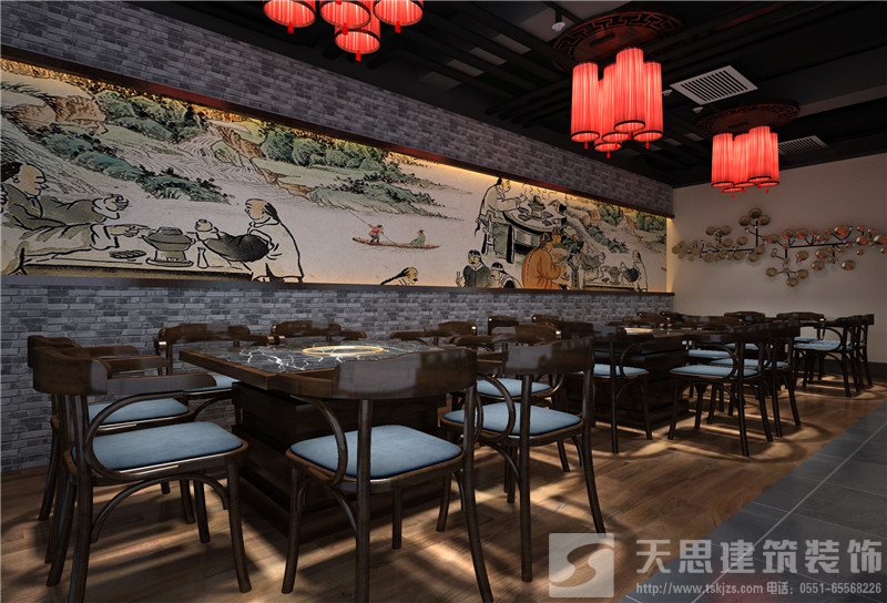 火鍋店是全國上下都喜歡的美食,起源于四川,遍布于全國甚至全球。人們不但在這里享受美食帶來的快樂,同時(shí)也開展人際交往、增進(jìn)感情等活動(dòng)和作用。讓顧客安全、愉快、舒暢地享受美食的樂趣,享受人際交往的樂趣,是一個(gè)裝修公司的重要任務(wù)。天思裝飾擁有多年的裝修施工和設(shè)計(jì)經(jīng)驗(yàn),專業(yè)化的設(shè)計(jì)視角打造特色的火鍋店裝修。在企業(yè)營銷活動(dòng)中借鑒各類文化因素,有效地豐富餐飲品牌的內(nèi)涵。對(duì)于火鍋店的裝修也要花些心思,才能提高餐飲店的鮮明的個(gè)性和地域特色。天思裝飾,專業(yè)的合肥火鍋店裝修設(shè)計(jì)公司,還提供合肥火鍋店裝修報(bào)價(jià)和經(jīng)典的火鍋店裝修效果圖,并承接外地的火鍋店裝修設(shè)計(jì)及施工。