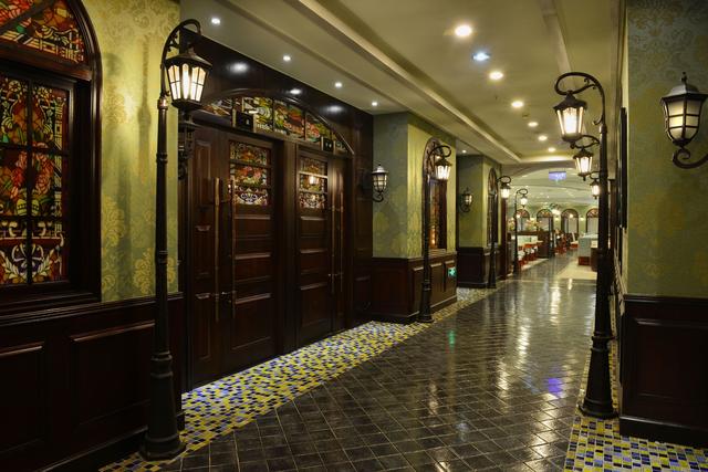 設(shè)計(jì)說明:整個(gè)餐廳以民國時(shí)期的重慶來打造,以民國建筑和民俗風(fēng)情為藍(lán)本,以民國時(shí)期六對著名的戀人作主題,就連服務(wù)員的服裝也特別制作為民國學(xué)生裝及軍統(tǒng)軍裝。紙醉金迷,恍若隔世。