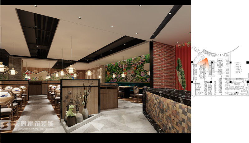 火鍋店是全國上下都喜歡的美食,起源于四川,遍布于全國甚至全球。人們不但在這里享受美食帶來的快樂,同時(shí)也開展人際交往、增進(jìn)感情等活動和作用。讓顧客安全、愉快、舒暢地享受美食的樂趣,享受人際交往的樂趣,是一個裝修公司的重要任務(wù)。天思裝飾擁有多年的裝修施工和設(shè)計(jì)經(jīng)驗(yàn),專業(yè)化的設(shè)計(jì)視角打造特色的火鍋店裝修。在企業(yè)營銷活動中借鑒各類文化因素,有效地豐富餐飲品牌的內(nèi)涵。對于火鍋店的裝修也要花些心思,才能提高餐飲店的鮮明的個性和地域特色。天思裝飾,專業(yè)的合肥火鍋店裝修設(shè)計(jì)公司,還提供合肥火鍋店裝修報(bào)價(jià)和經(jīng)典的火鍋店裝修效果圖,并承接外地的火鍋店裝修設(shè)計(jì)及施工。