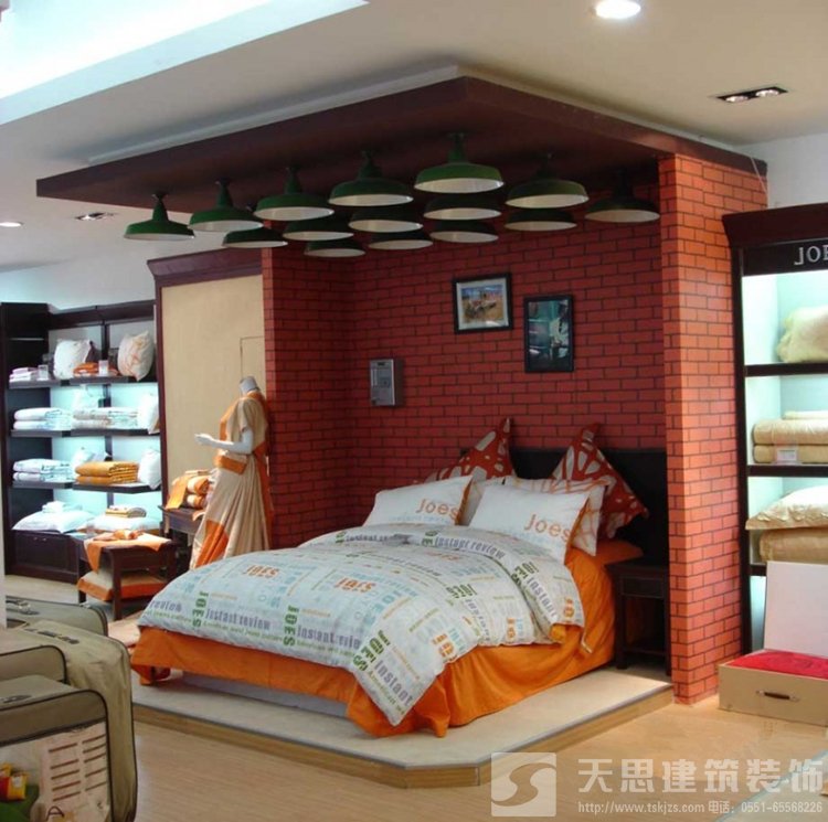 家紡店裝修通過(guò)對(duì)多種裝飾素材的精心運(yùn)用不僅能使店鋪室內(nèi)設(shè)計(jì)的風(fēng)格鮮明,店面的特色突出,而且還能對(duì)店內(nèi)商品起很好的烘托作用?,F(xiàn)在的家紡店裝修應(yīng)該要選擇簡(jiǎn)歐帶點(diǎn)現(xiàn)代的風(fēng)格,這樣比較能過(guò)吸引顧客。室內(nèi)設(shè)計(jì)應(yīng)設(shè)計(jì)的溫馨,大氣 ,浪漫,這樣才會(huì)有很大的客戶(hù)量。