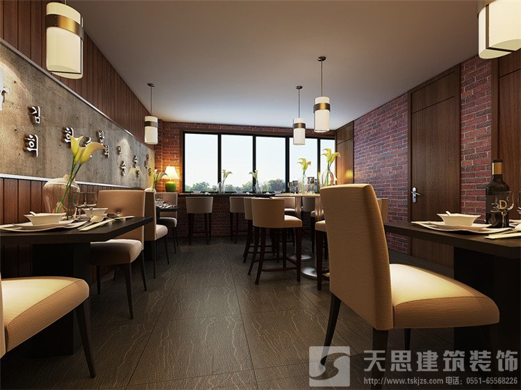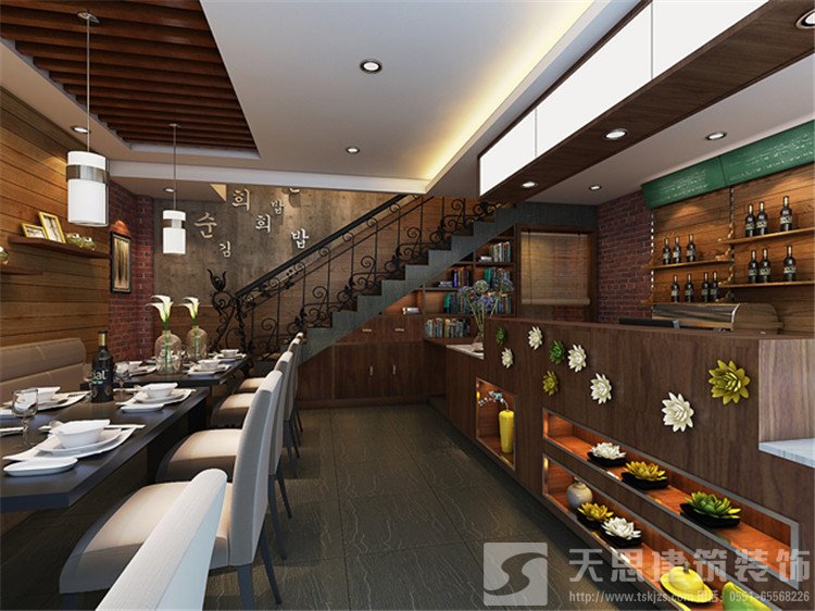 韓國(guó)紫菜包飯屬于一家連鎖店,在合肥目前有接近10家分店,在裝修風(fēng)格上結(jié)合了地域文化特點(diǎn),韓國(guó)人的居住空間比較狹小,對(duì)空間的利用非常緊湊。席地而坐的生活習(xí)慣讓他們呈現(xiàn)出一種低姿態(tài)的,貼近自然的生活形態(tài),居室的設(shè)計(jì)所呈現(xiàn)出來(lái)的是小家碧玉式的精致,沒(méi)有奢華和張揚(yáng)??臻g裝飾多采用簡(jiǎn)潔、硬朗的直線條 ,反映出現(xiàn)代人追求簡(jiǎn)單生活的居住要求,迎合了韓式家居追求內(nèi)斂、質(zhì)樸的設(shè)計(jì)風(fēng)格。