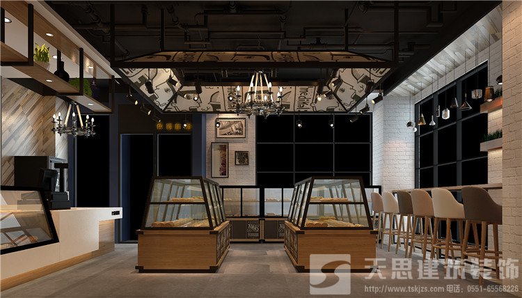 設(shè)計(jì)風(fēng)格以復(fù)古的文化氣息結(jié)合現(xiàn)代的審美要求創(chuàng)造出一種具有歐洲古堡韻味、時(shí)尚個(gè)性、極具創(chuàng)意感以適應(yīng)不同人群的需求及審美的設(shè)計(jì)??臻g頂部設(shè)計(jì)采用裸頂噴灰漆局部吊頂?shù)氖址?,突出重點(diǎn)區(qū)域,節(jié)省成本。墻面采用水泥漆、文化磚等,地面采用水泥地坪漆,整個(gè)空間采用灰色調(diào)突出展柜的木紋顏色,進(jìn)而突顯產(chǎn)品,使整個(gè)空間顯得高大上。店內(nèi)以灰色調(diào)為主,采用藍(lán)綠色作為點(diǎn)綴,使得屋外與屋內(nèi)得到了很好的延續(xù)。