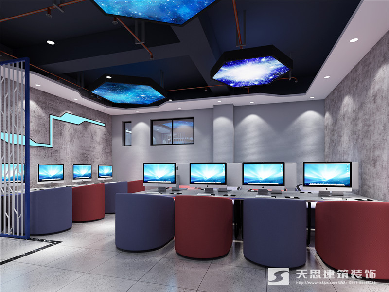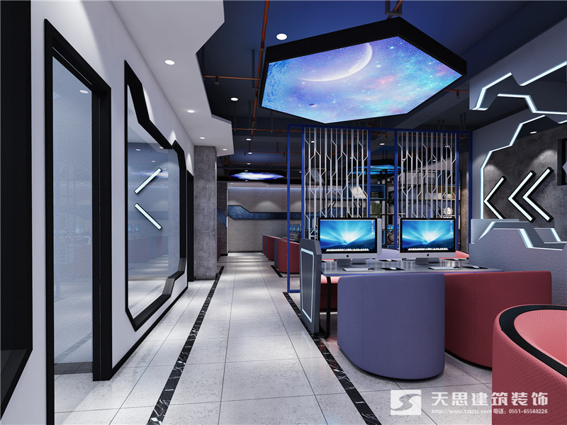 根據(jù)業(yè)主的要求,網(wǎng)咖設(shè)計(jì)的整體顏色以淺色為主,中間穿插對(duì)比強(qiáng)烈的撞色系來(lái)展現(xiàn)效果。