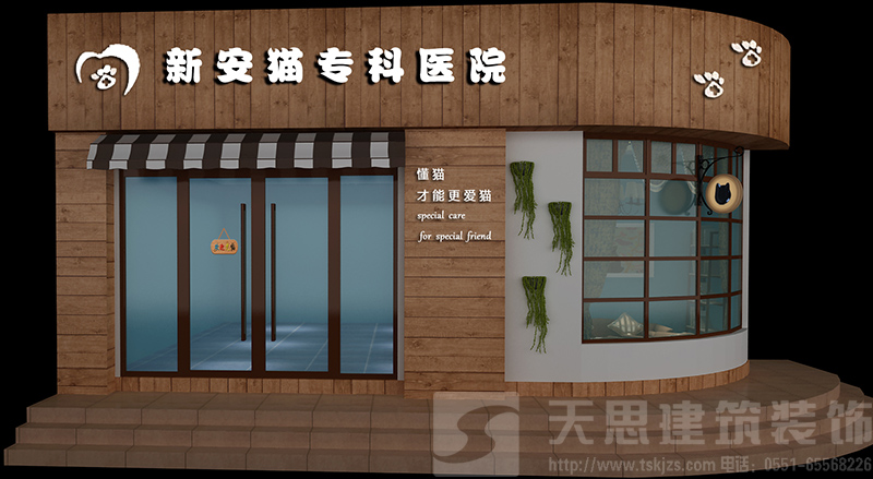 工程名稱(chēng):貓科醫(yī)院 設(shè)計(jì)師:葉曉麗 面積:150平米 項(xiàng)目地址:廬陽(yáng)區(qū)北一環(huán)沿河路 設(shè)計(jì)簡(jiǎn)介:新安貓科醫(yī)院是一家專(zhuān)業(yè)為寵物貓?zhí)峁┽t(yī)療、護(hù)理以及美容的醫(yī)院。門(mén)頭設(shè)計(jì)