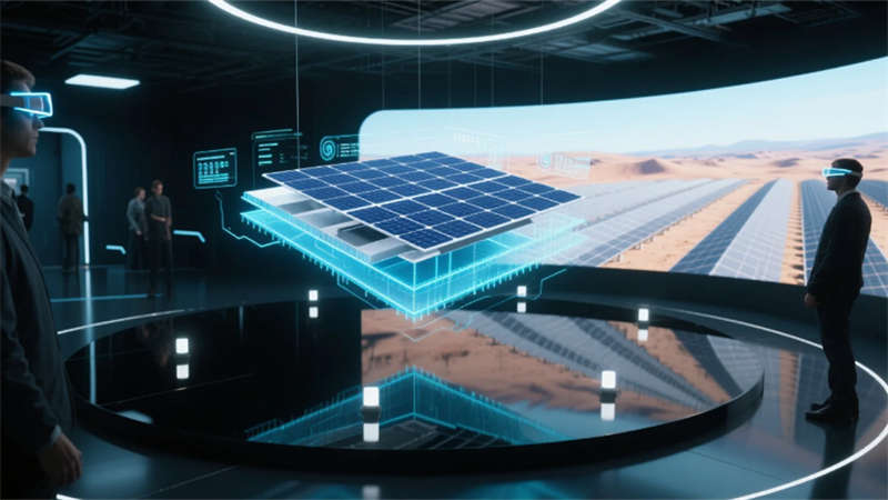 技術(shù)展廳打破虛實(shí)界限,光伏組件剖面的微光粒子在AR交互中躍動(dòng),沙漠電站的全息投影與真實(shí)光照系統(tǒng)共舞。研發(fā)中心的螺旋實(shí)驗(yàn)臺(tái)如基因鏈盤旋上升,透明隔離門映出窗外光伏屋頂?shù)牟y光影,潔凈度標(biāo)識(shí)在氣流中浮沉若星。