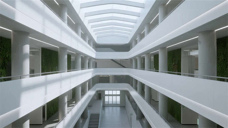 這座生物制藥創(chuàng)新基地以模塊化設(shè)計與綠色生態(tài)為核心,將科研、生產(chǎn)、生活空間有機整合。建筑采用現(xiàn)代簡約語言,通過玻璃、金屬與自然元素的碰撞,傳遞科技與人文的平衡。室內(nèi)空間注重功能性與舒適度,實驗室與車間遵循高效流線,而休閑區(qū)與屋頂花園則為員工提供親近自然的場所。園區(qū)夜景通過光影設(shè)計展現(xiàn)生物醫(yī)藥行業(yè)的未來感,同時屋頂太陽能板與雨水回收系統(tǒng)呼應(yīng)低碳目標。整體設(shè)計既滿足尖端制藥工藝需求,亦成為合肥科技創(chuàng)新形象的標志性載體。
