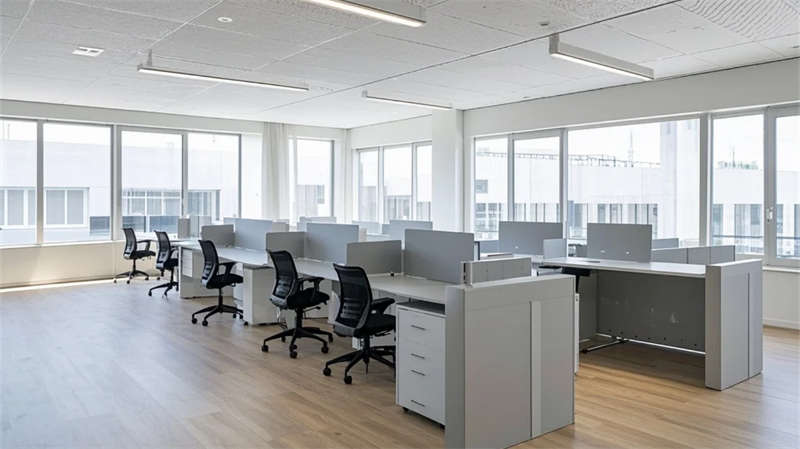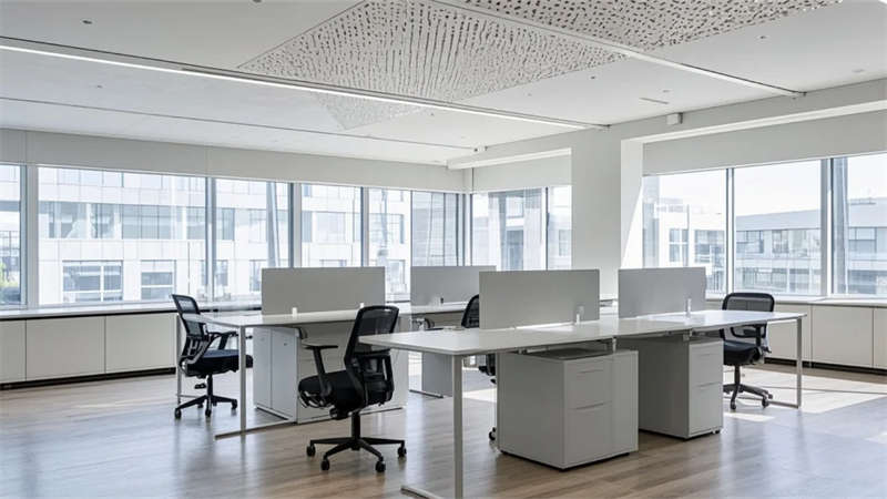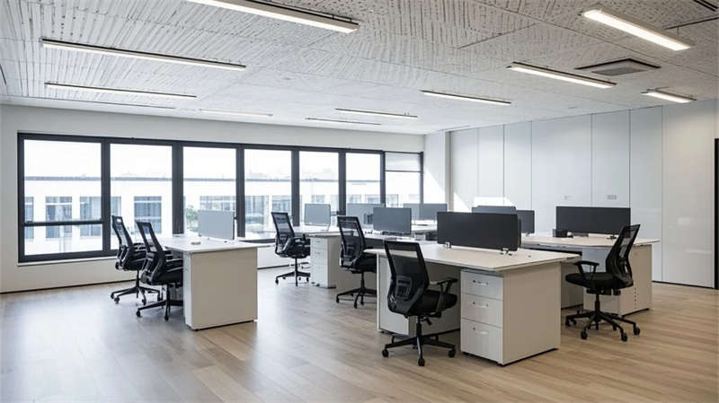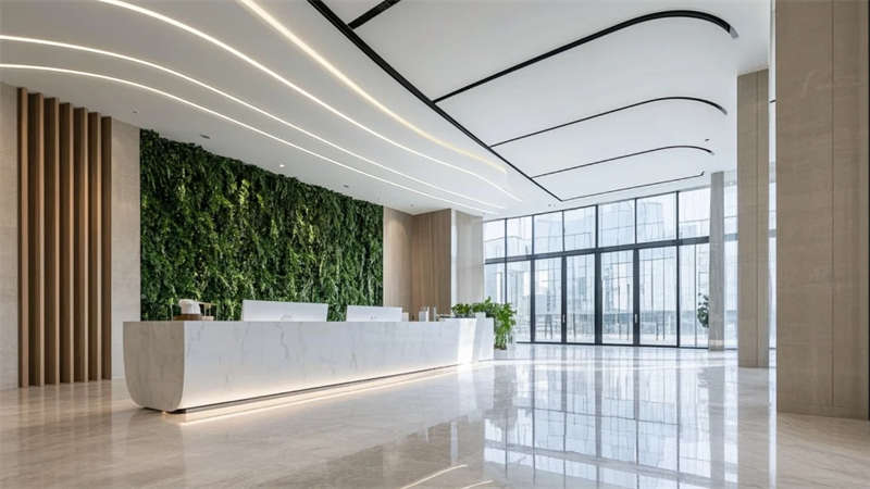 功能布局強(qiáng)調(diào)流暢性:開放式辦公區(qū)借全景落地窗引入室外綠意,提升工作舒適度;智能車間通過規(guī)整的管線排布與環(huán)氧地坪,傳遞高效與秩序;員工休閑區(qū)與生態(tài)中庭形成呼吸節(jié)點,綠植與藝術(shù)裝置柔化工業(yè)環(huán)境的剛性。設(shè)計注重光線的戲劇性表達(dá),線性燈光與天窗協(xié)作,在走廊、會議室等區(qū)域投落細(xì)膩光斑,強(qiáng)化空間縱深感。