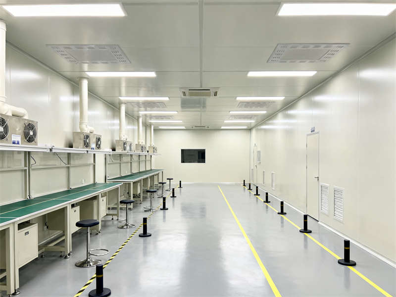 室內(nèi)裝修延續(xù)了外觀的設(shè)計語言,以淺灰、米白為基礎(chǔ)色調(diào),搭配深灰金屬線條點綴,各區(qū)域材質(zhì)統(tǒng)一,地面均采用耐磨易清潔的環(huán)氧地坪,墻面根據(jù)不同功能需求選用潔凈板或工業(yè)風(fēng)涂料,確保整體視覺協(xié)調(diào)。無塵車間注重潔凈與開闊,通過合理布局設(shè)備與通風(fēng)系統(tǒng),營造出無粉塵、秩序井然的生產(chǎn)環(huán)境;實驗室則突出精準(zhǔn)專業(yè),實驗臺、通風(fēng)櫥等設(shè)施規(guī)劃合理,滿足各類實驗操作需求。?