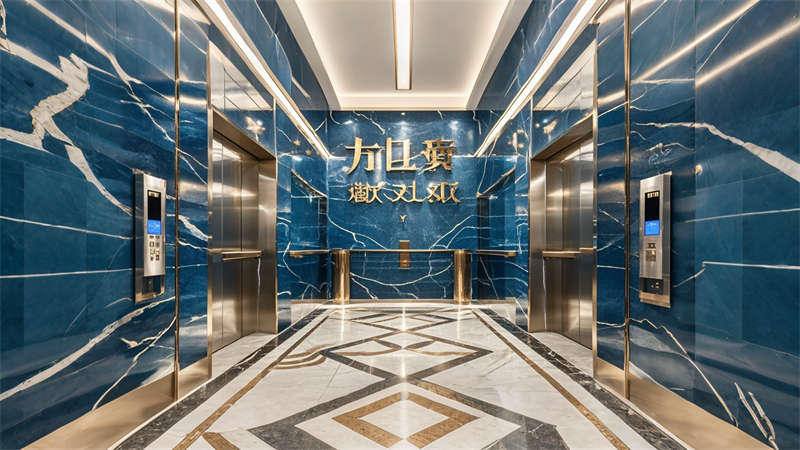 色彩體系以香檳金與深海藍為主調(diào),大堂采用香檳金金屬線條勾勒建筑肌理,搭配深海藍大理石營造視覺重心??头繀^(qū)運用暖灰硬包墻面平衡色彩強度,通過2700K暖光與4000K中性光分區(qū)照明塑造晝夜場景。材質(zhì)組合注重層次:大理石地面、金屬構(gòu)件、絨布軟包形成質(zhì)感三部曲。
