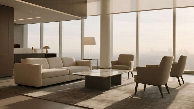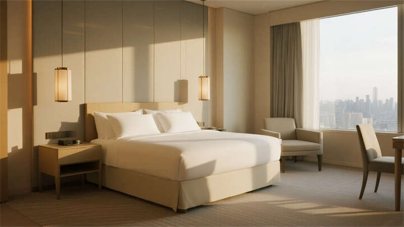 空間布局開闊通透,巨大的落地窗將自然光引入室內(nèi),與精心設(shè)計(jì)的隱藏式燈光系統(tǒng)共同營(yíng)造出溫暖而富有層次的光影氛圍。從大堂的恢弘大氣到客房的靜謐溫馨,每一處細(xì)節(jié)都旨在為旅客提供一種沉浸式的、回歸本真的休憩體驗(yàn)。整體設(shè)計(jì)強(qiáng)調(diào)人與空間的情感連接,在簡(jiǎn)約中蘊(yùn)含深度,于現(xiàn)代中流露溫潤(rùn),成就了一處城市中可呼吸、可感知的詩意棲居地。