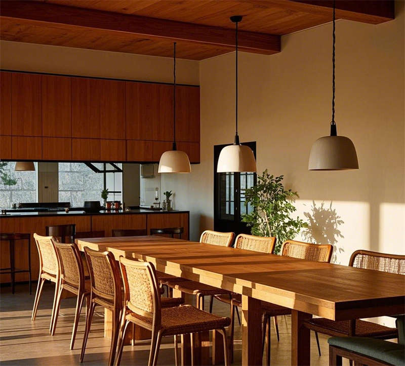這套1000平民宿設(shè)計以自然簡約風(fēng)格為核心,營造出溫暖舒適、貼近自然的居住體驗。整體空間以原木色調(diào)為主,搭配米白色、淺灰等柔和色彩,輔以綠植點綴,呈現(xiàn)出清新自然的氛圍。大堂以原木色前臺和藤編吊燈為亮點,搭配落地窗引入充足光線,營造出溫馨的迎賓空間??蛷d采用開放式布局,原木地板與編織地毯相得益彰,搭配圓形茶幾和落地?zé)?,打造出輕松愜意的休閑區(qū)域。餐廳延續(xù)自然風(fēng)格,長桌與藤編餐椅的組合簡潔大方,開放式廚房與吧臺的設(shè)計增強了空間的互動性。臥室分為兩種風(fēng)格,一種以藤編床頭和棉麻床品為主,營造出舒適的睡眠環(huán)境;另一種采用日式榻榻米設(shè)計,搭配推拉門和竹林景觀,傳遞出寧靜禪意的氛圍。浴室同樣注重自然元素的運用,圓形浴缸與綠植的結(jié)合讓人仿佛置身于自然之中,而日式風(fēng)格的浴室則通過竹制裝飾和庭院景觀,進一步強化了寧靜放松的體驗。戶外庭院以石板小路和木質(zhì)平臺為主,搭配休閑桌椅和綠植環(huán)繞,為客人提供了一個親近自然的戶外休閑空間。整體設(shè)計注重材質(zhì)與光影的運用,將自然元素與現(xiàn)代簡約風(fēng)格完美融合,打造出一個舒適、放松的民宿空間。