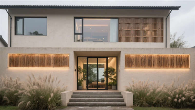 本案以“現(xiàn)代自然主義”為核心理念,將合肥山水肌理與當(dāng)代設(shè)計(jì)語(yǔ)言交融,打造一座會(huì)呼吸的城市棲居地。建筑外立面以淺米色微水泥為基底,橫向原木格柵與嵌入式線性光帶勾勒出簡(jiǎn)約輪廓,入口矮蒲葦隨風(fēng)輕搖,模糊室內(nèi)外界限。