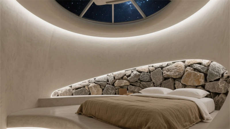 功能布局巧妙銜接室內(nèi)外呼吸感:接待廳玻璃幕墻引竹林入畫,禪茶室借枯山水凝神靜氣;餐廳與書吧以可移動家具實(shí)現(xiàn)場景轉(zhuǎn)換,暗藏式光源在夜間描摹空間輪廓。客房設(shè)計(jì)強(qiáng)調(diào)私密療愈,星空穹頂與混凝土浴缸形成原始與現(xiàn)代的詩意碰撞。