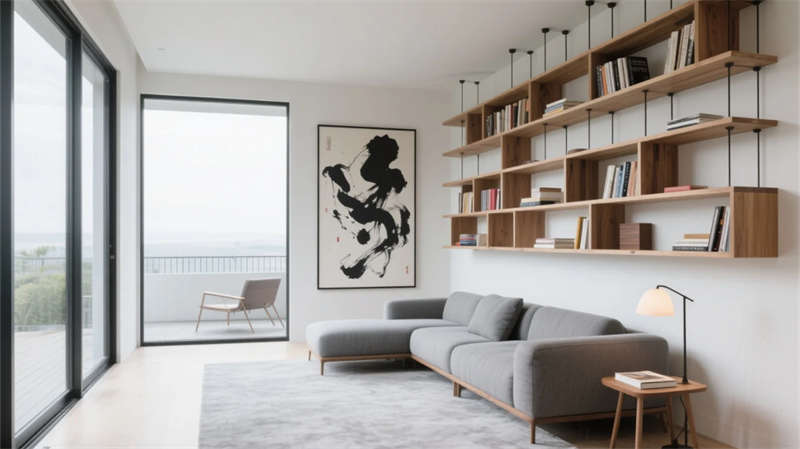 本案以光為媒介重塑空間韻律,將現(xiàn)代簡約美學(xué)植入在地肌理。通體運(yùn)用淺木與水泥灰的質(zhì)感對話,通過懸浮結(jié)構(gòu)、留白比例和線性光影,構(gòu)建輕盈通透的視覺基調(diào)。