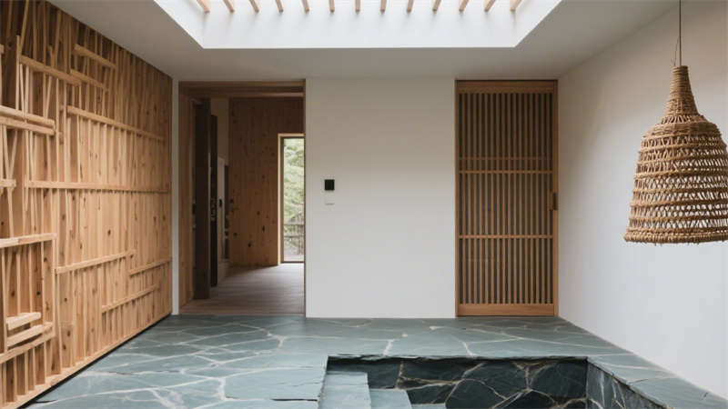 私密客房延續(xù)整體風(fēng)格,床具與家具均選用簡約線條的原木款式,搭配淺灰色床品與局部的自然織物,營造出松弛的休憩環(huán)境。細(xì)節(jié)處,墻面裝飾以天然石材切片與手工陶藝,地面鋪設(shè)防滑耐磨的原木紋地板,既保證實(shí)用功能,又強(qiáng)化了自然質(zhì)感。整個設(shè)計(jì)沒有多余的繁復(fù)裝飾,而是通過材質(zhì)的碰撞、光影的變化與色彩的協(xié)調(diào),讓每一處空間都傳遞出 “歸于本真” 的居住理念,為入住者提供遠(yuǎn)離喧囂、親近自然的休憩體驗(yàn)。